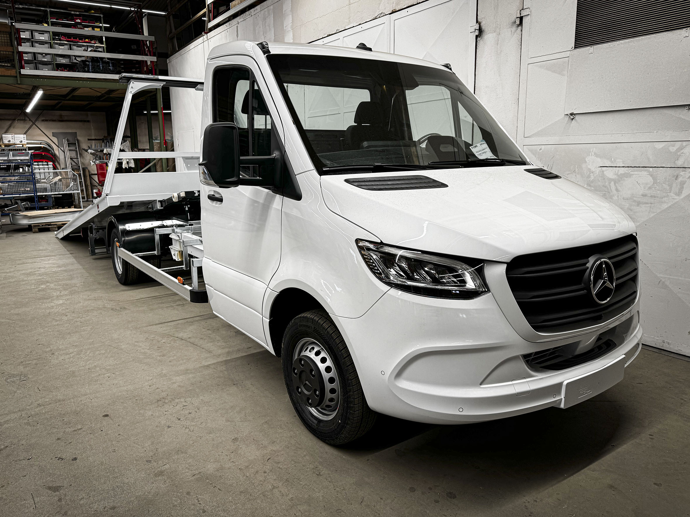 Wir haben einen Verschiebeplateau-Aufbau zum Autotransport auf einem Mercedes Sprinter Fahrgestell fertiggestellt und stehen kurz vor der Übergabe an unseren Kunden. Heute machen wir noch ein Video und ein paar
