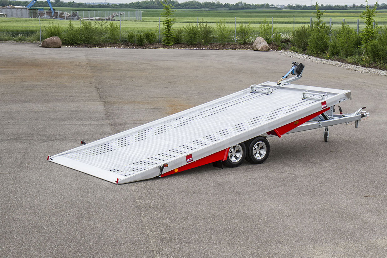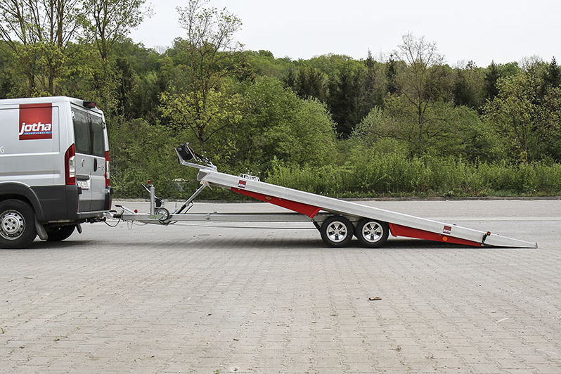 Das ist unser absoluter Allround-Anhänger. Durchgehende Auffahrt, keine Auffahrschienen, bequeme Hydraulik. So geht Autotransport für Profis – und das wollen wir in dem Clip natürlich auch zeigen.